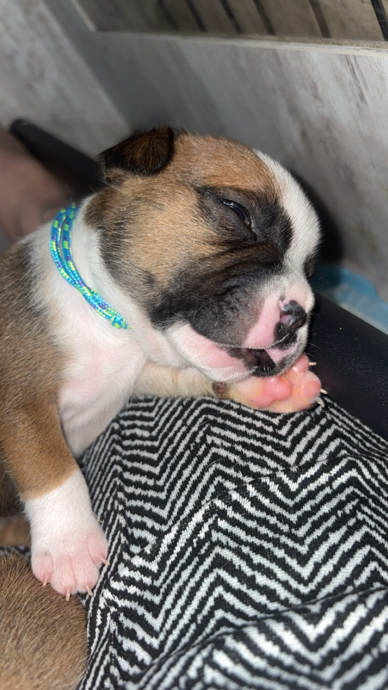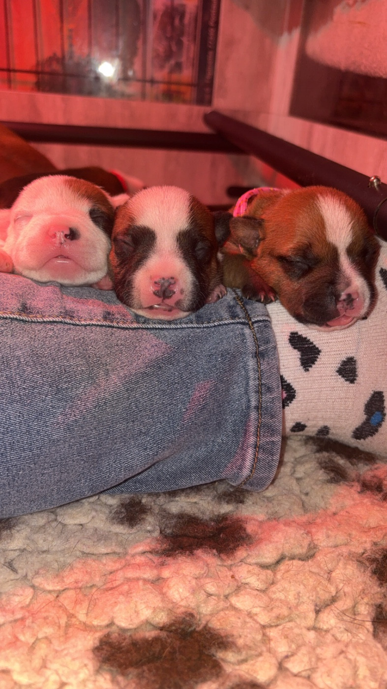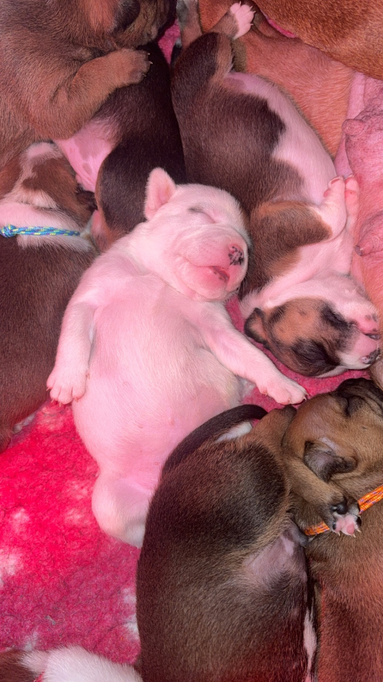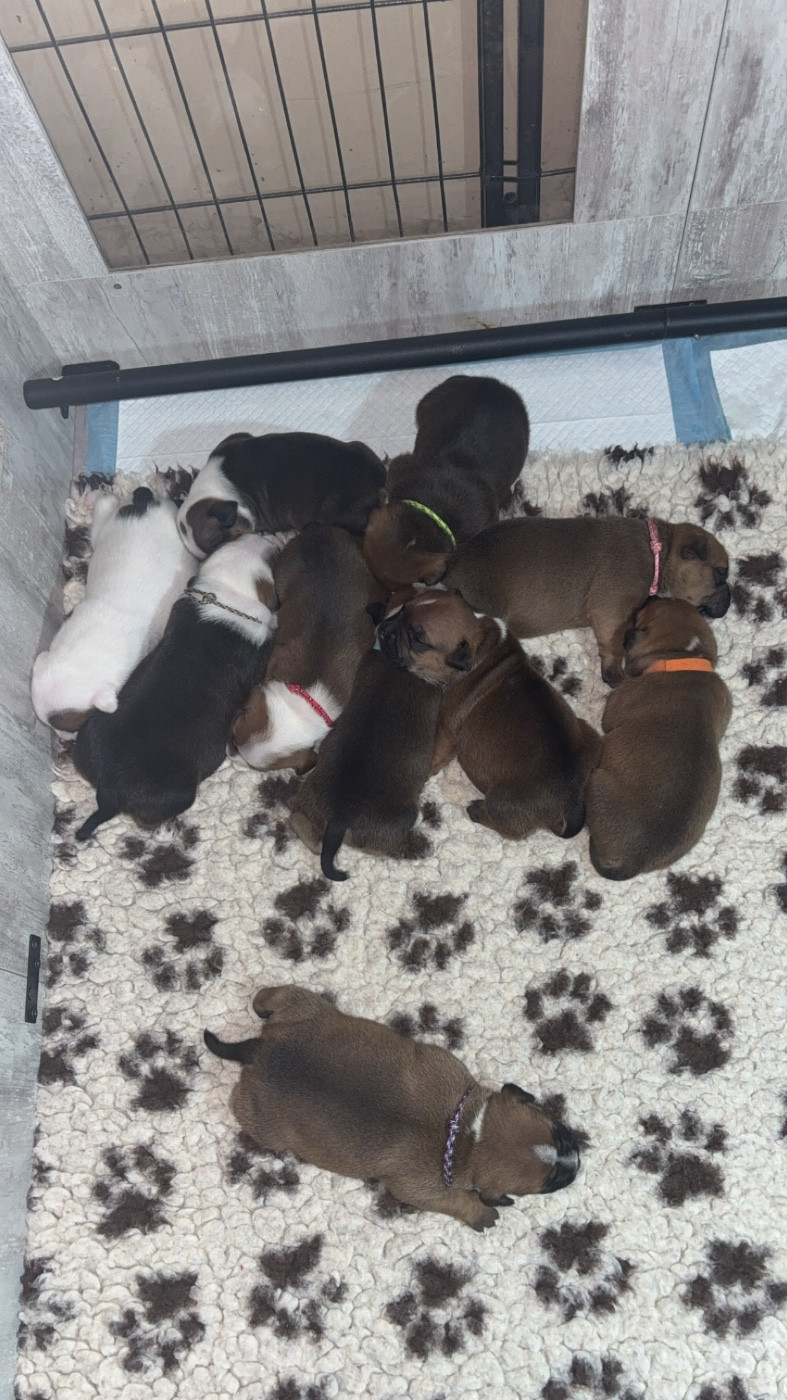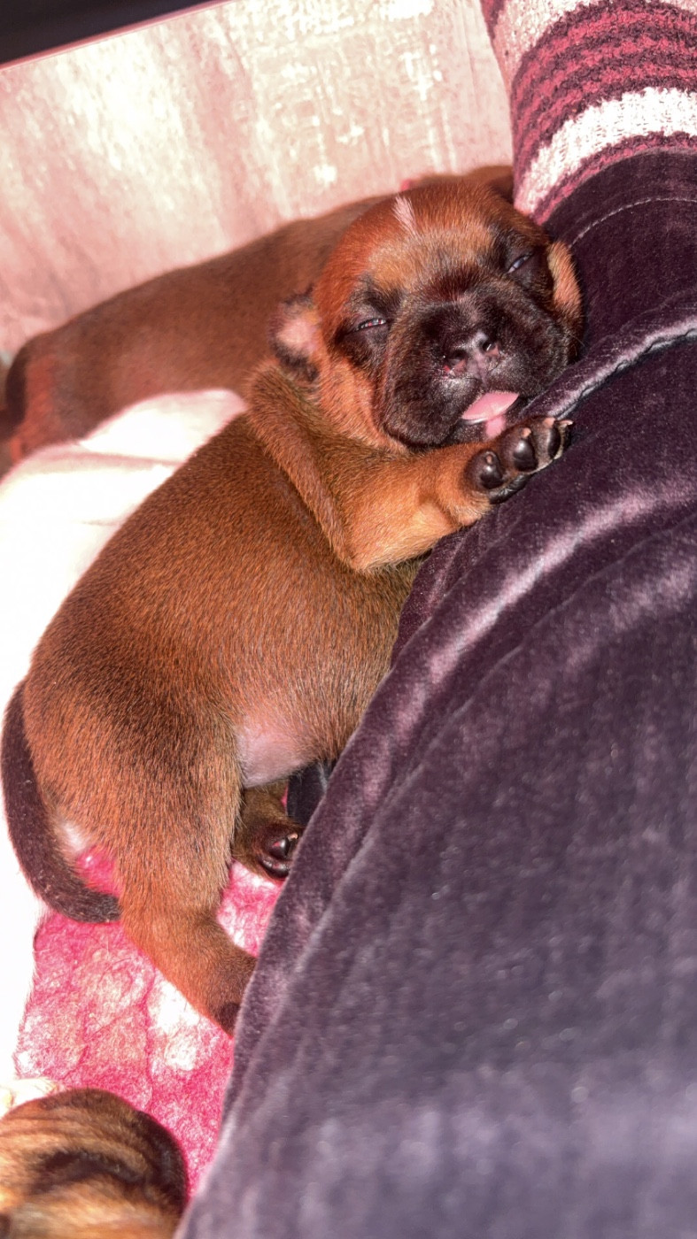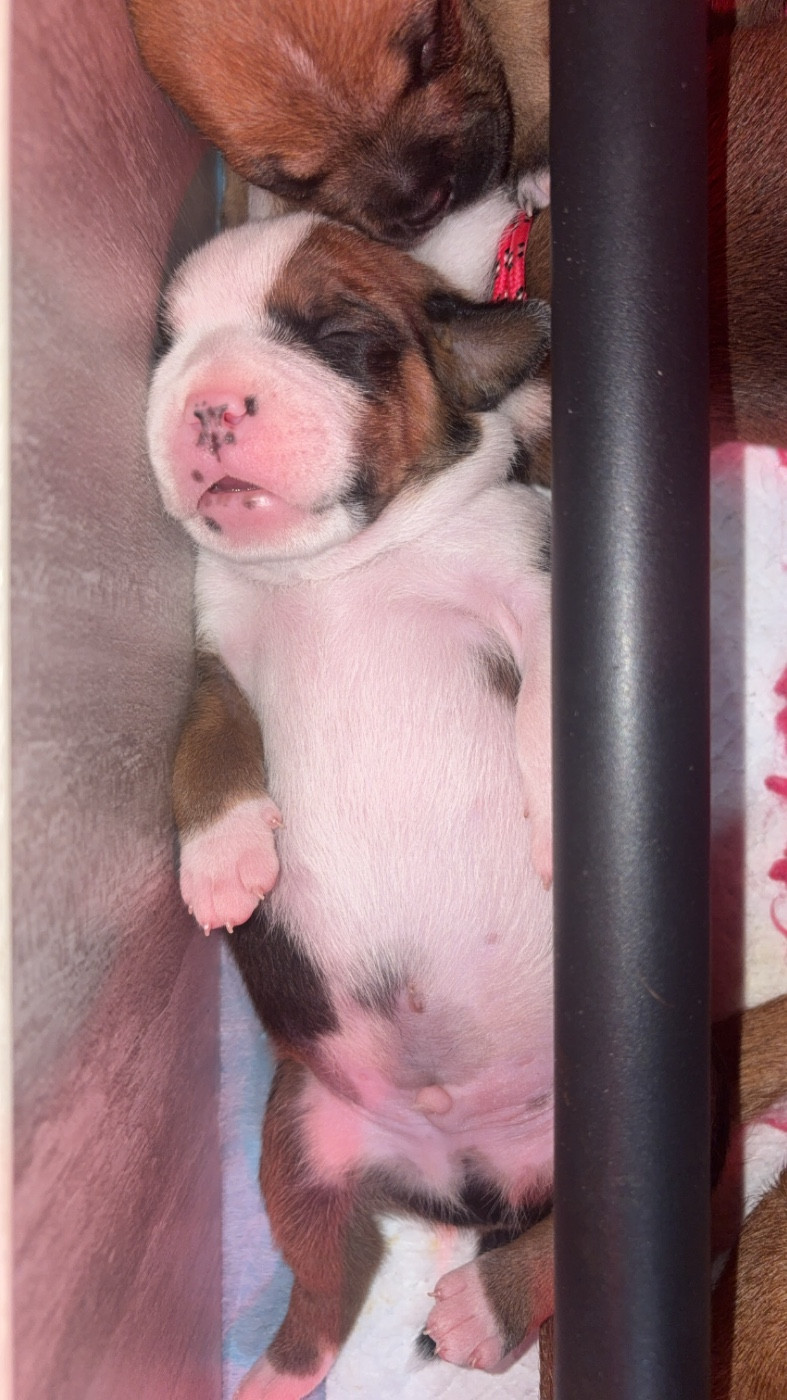 Chiot umi Femelle collier rouge Sa dort le ventre plein bien rond Mâle collier orange Male Tous à la cantine